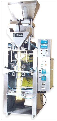 | It consists of weighing pans fitted on load cell. The load cell is then connected to a microprocessor type controller where the weight settings etc. are made. When it receives the dump signal, then the material is dumped into the machine. A film roll of suitable width has to be mounted at the back of the machine. Then the film goes into the unwinding assembly and then enters into the forming collor and forms into a tube. The vertical sealer seals the front of the tube. Then the material is filled and the bottom seal is made. The cutter then automatically seperates the pouch. This Machine is suitable for packing Capsules, Namkeens, Dry Snack foods, Potato chips, Popcorn, Cashew Nuts, Pista, Almonds, Biscuits, Hardware like Bolt, Nuts, Screws, etc., |